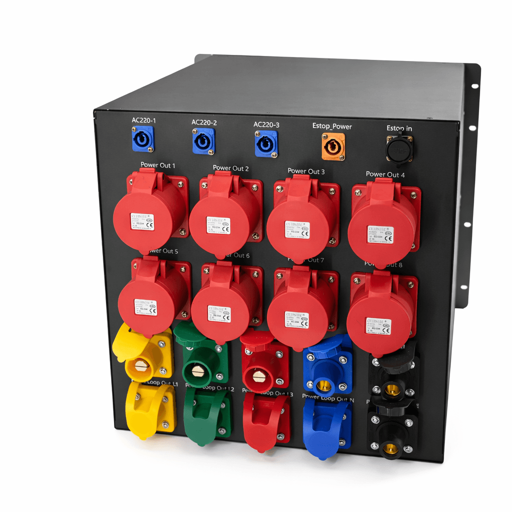 | Интерфейсы | • Розетки 200А (2×5P) • Авиационные розетки 32А (4×5P) • Розетки PowerCon (4×3P) • Вход аварийной остановки |